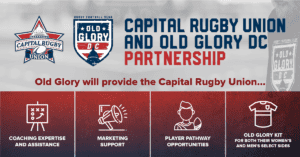 FOR IMMEDIATE RELEASE — (Washington, DC – November 22, 2019) — Old Glory DC Rugby is proud to announce a partnership with the Capital Rugby Union (CRU) to begin the creation of a cohesive player development pathway for the Mid-Atlantic region. Under this multi-faceted partnership, Old Glory will provide the CRU with sponsorship support, coaching expertise and assistance, marketing support, and player pathway opportunities culminating in prospects for a Major League Ruby contract. Old Glory will also provide kit for both the CRU’s women’s and men’s select sides, which will be known as the Old Glory Capital Selects. The CRU, as the home union for 55 men’s, women’s, and collegiate women’s clubs from D.C, Maryland, Virginia, Pittsburgh, and Raleigh, North Carolina, will serve as a conduit for the development of home-grown players with aspirations to one day compete at the highest levels of North American professional or international rugby. It is expected that the men’s select side will include many of Old Glory’s training players and reserves.